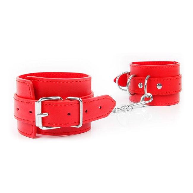 Оковы на регулируемых пряжках и короткой цепочкой с карабинами. Отличный БДСМ-аксессуар для любителей эротических ролевых игр "господство и подчинение"